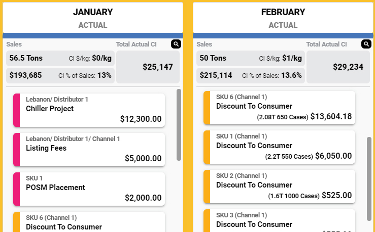 Summary of Sales & Commercial Investments for year-to-date & entire year, placed at the top of the CI calendar for constant visibility on total performance.